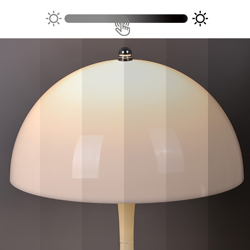 Valguse lüliti on ülaosas väike rauast rant, mis on puutetundlik ja millel on kolm reguleeritava sooja valguse taset. See disain on integreeritud kerge tõstukiga, luues harmoonilise atmosfääri