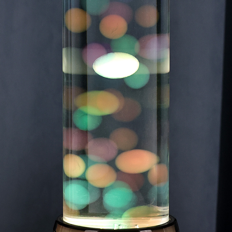 Lambi kõrge elegantne silindrikuju annab sellele modernse minimalistliku ilme, mis täiendab erinevaid interjööri stiile. Selle läbipaistev korpus võimaldab sisemiste elementide, sealhulgas hõljuvate meduuside ja säravate valguspeegelduste täielikku nähtavust. Sees olev vedelik on spetsiaalselt loodud veevoolu simuleerimiseks, suurendades ujuva liikumise realistlikkust. Kui LED-tuled muudavad värve, näivad meduusid eluga pulseerivat, lisades stseenile sügavust ja liikumist.