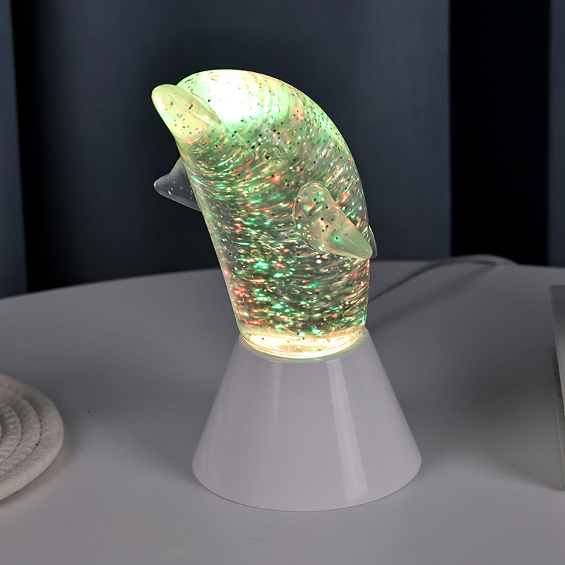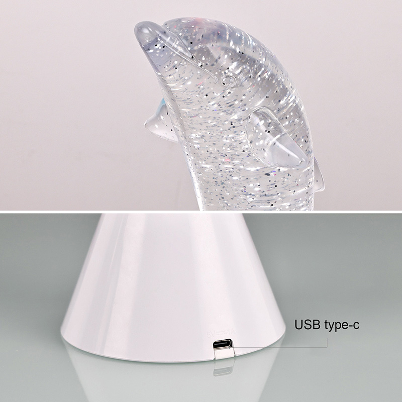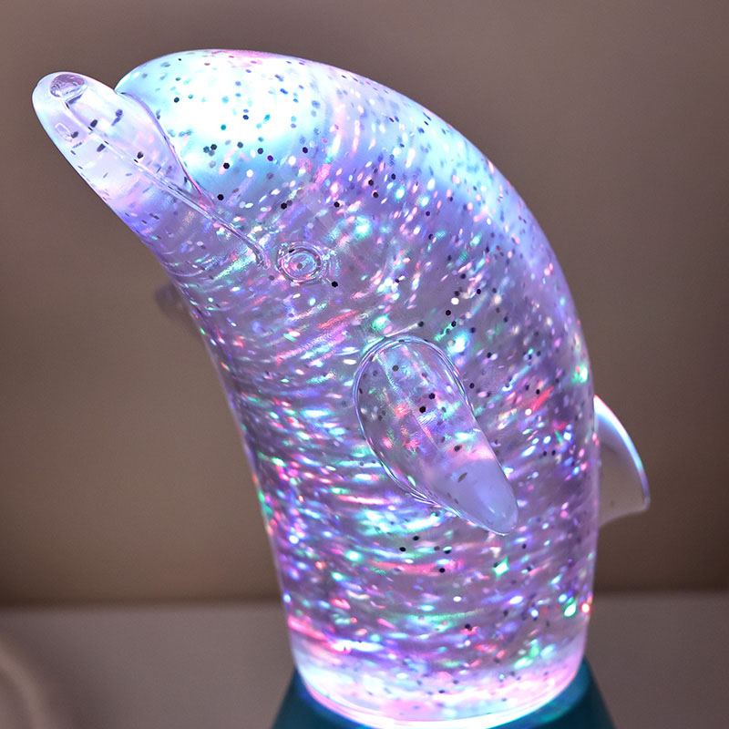 Dolphin Kid Gift Glitter RGB Nigh Light on kujundatud armsa delfiini kujuga, siledate joonte ja peente detailidega, mis taastavad täiuslikult delfiinide väleda kehahoiaku. Läbipaistva delfiinikarbi sees, litrite kujul Ebaregulaarsed liigutused võivad värve kaunilt peegeldada, luues rahuliku ja salapärase atmosfääri. Iga kord, kui seda lampi vaatate, on tunne, nagu oleksite sügavas ookeanis Nende hulgas tunnete looduse lõputut võlu Varustatud täiustatud RGB värvimuutva valgustustehnoloogiaga, mis võimaldab teil vabalt mitme värvi vahel vahetada. Olgu see siis soe oranž, romantiline roosa või rahulik sinine,