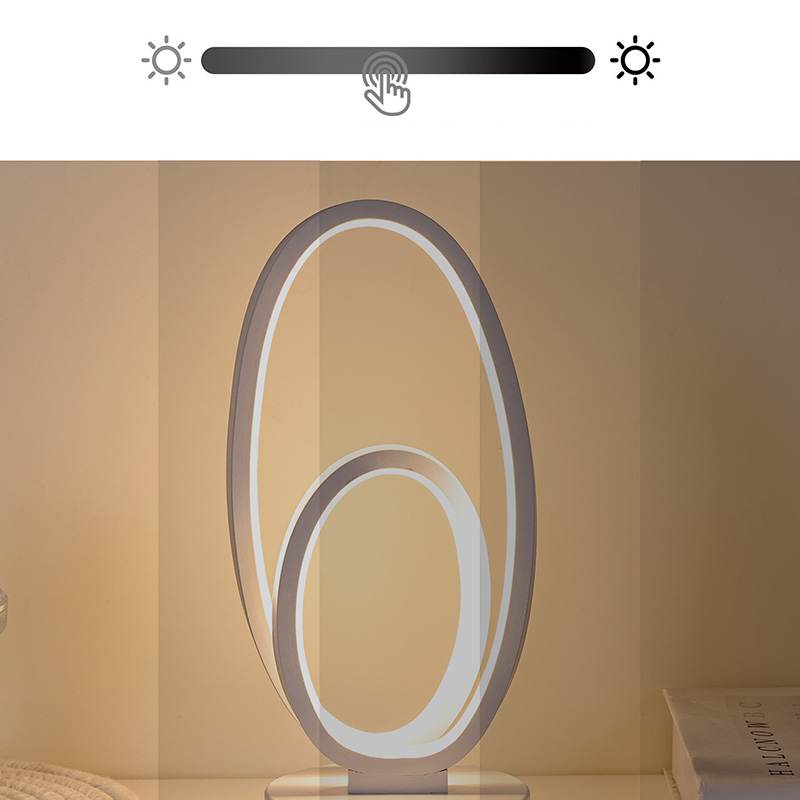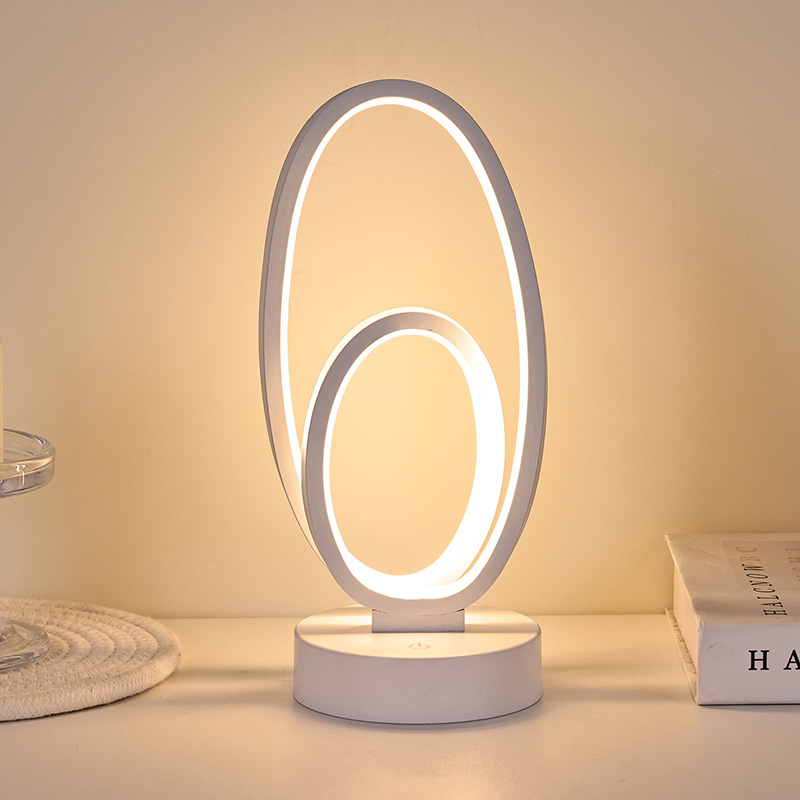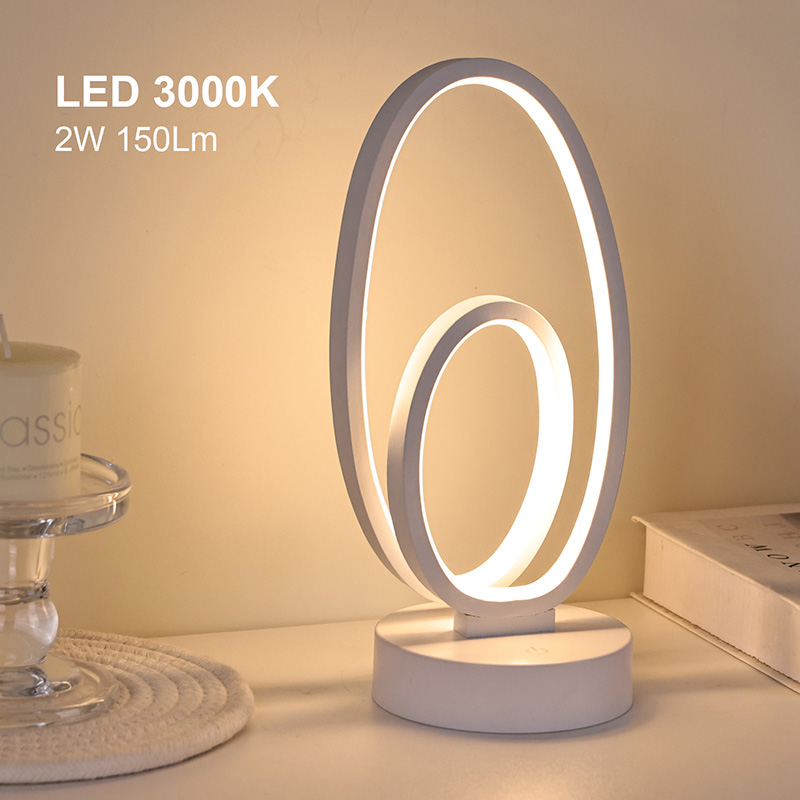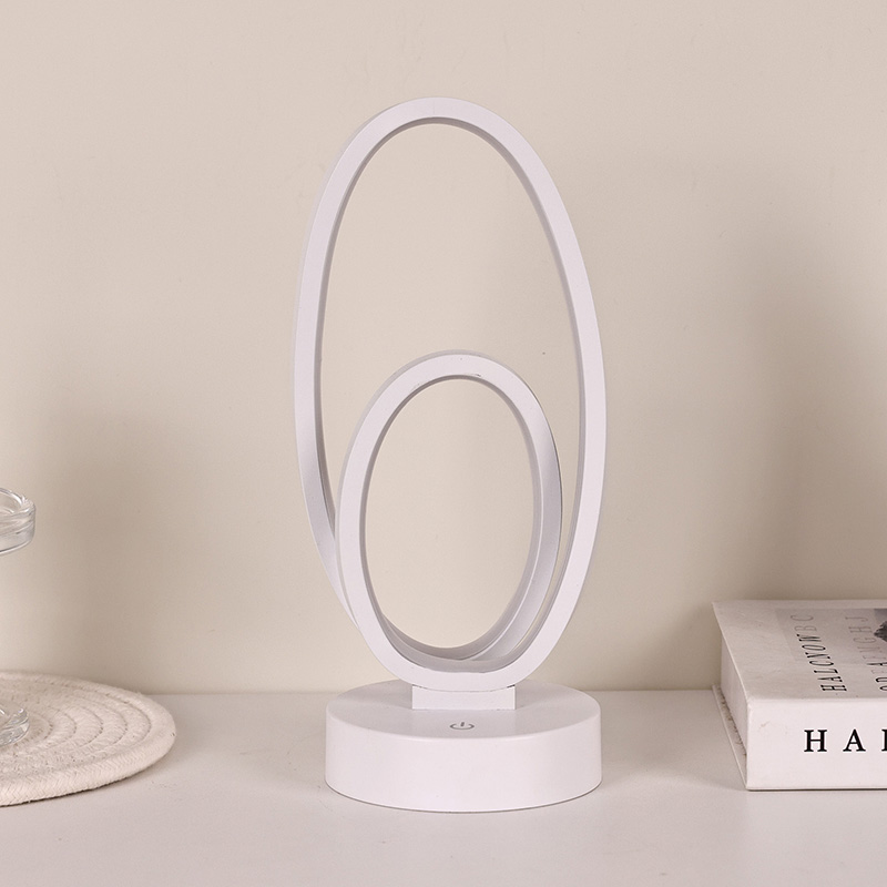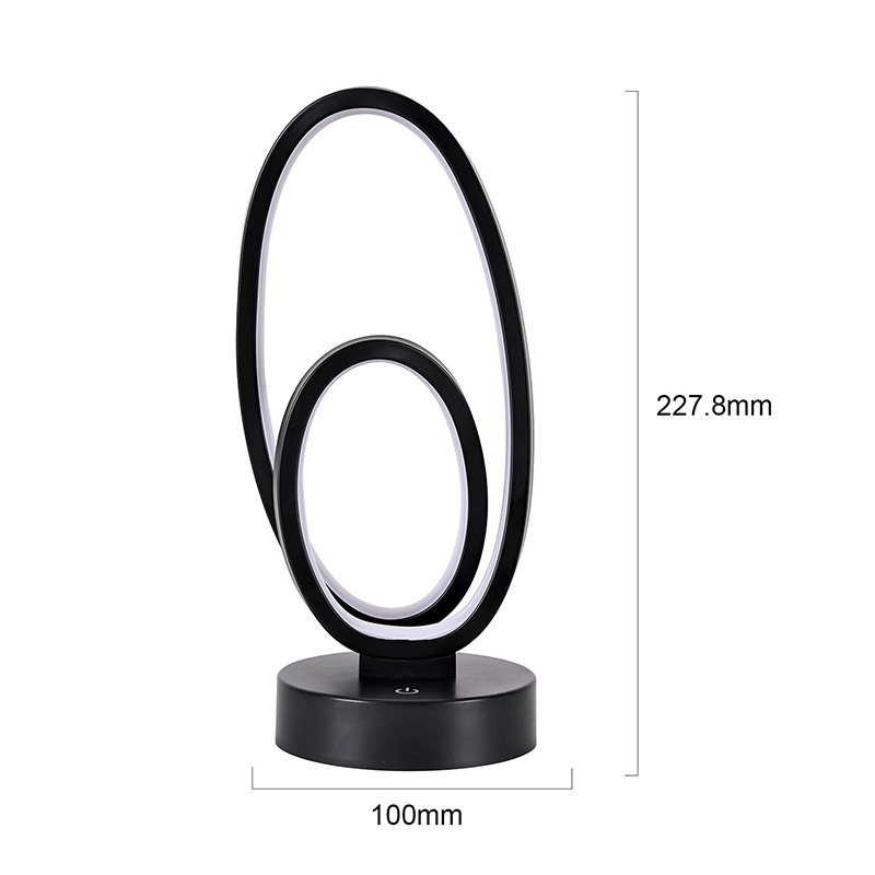 Kahe ümmarguse rõngasvarjuga RGB laualamp on koduruumide kunstiline aktsent, millel on alalisvoolu ohutu madalpinge toiteallikas, mis tagab stabiilse ja energiasäästliku jõudluse ning tagab ohutu kasutamise. Sobib erinevatele stsenaariumidele, nagu elutuba, lastetuba, õppeala ja magamistuba