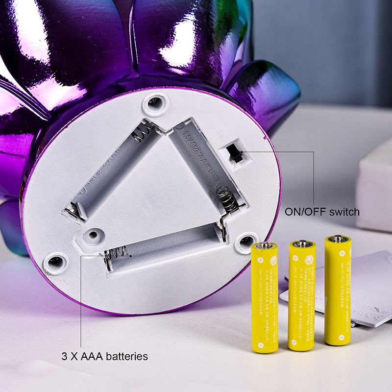 Öövalgusti põhi on valmistatud kvaliteetsest plastikust luksusliku pihustusvärviga lillaga