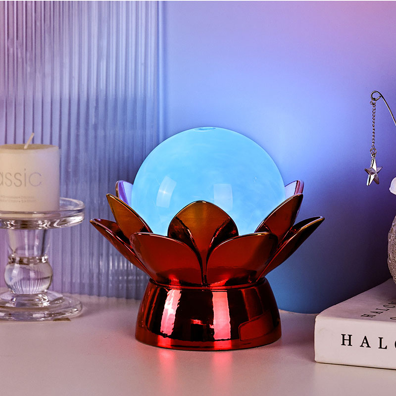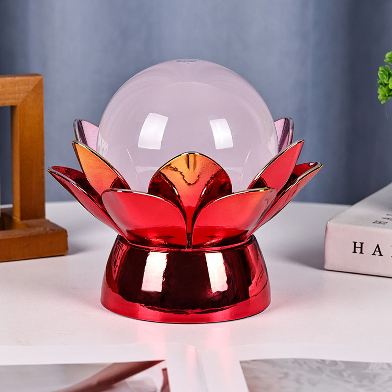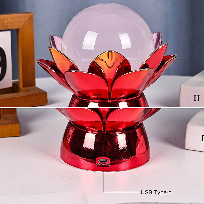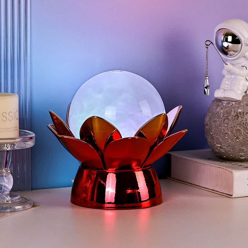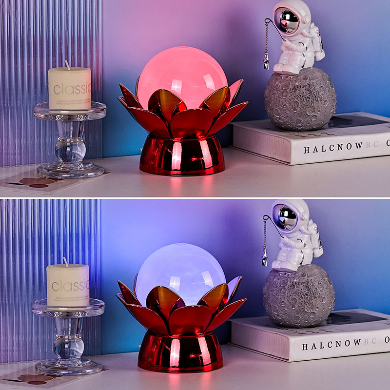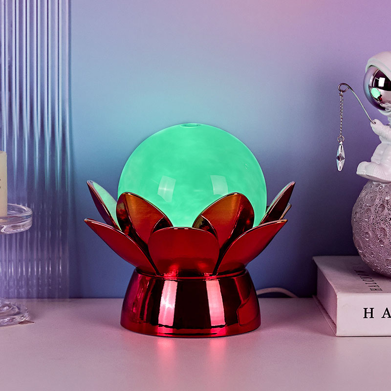 Lummav Lotus Cloud Globe Night Light – loodusest inspireeritud disaini, rahustava õhkkonna ja kaasaegse tehnoloogia lummav suland. Sellel elegantsel dekoratiivlambil on poolläbipaistev klaasist maakera, mis on täidetud spetsiaalse vedelikuga, mis simuleerib triivivaid pilvi, luues vaikse, eeterliku efekti, kui see õrnalt keerleb ja voolab. Pühast lootoseõiest inspireeritud öölamp toetub kaunilt valmistatud metallilisele alusele, mis on kujundatud õitsevate lootose kroonlehtedena, sümboliseerides puhtust, rahu ja vaimset ärkamist.