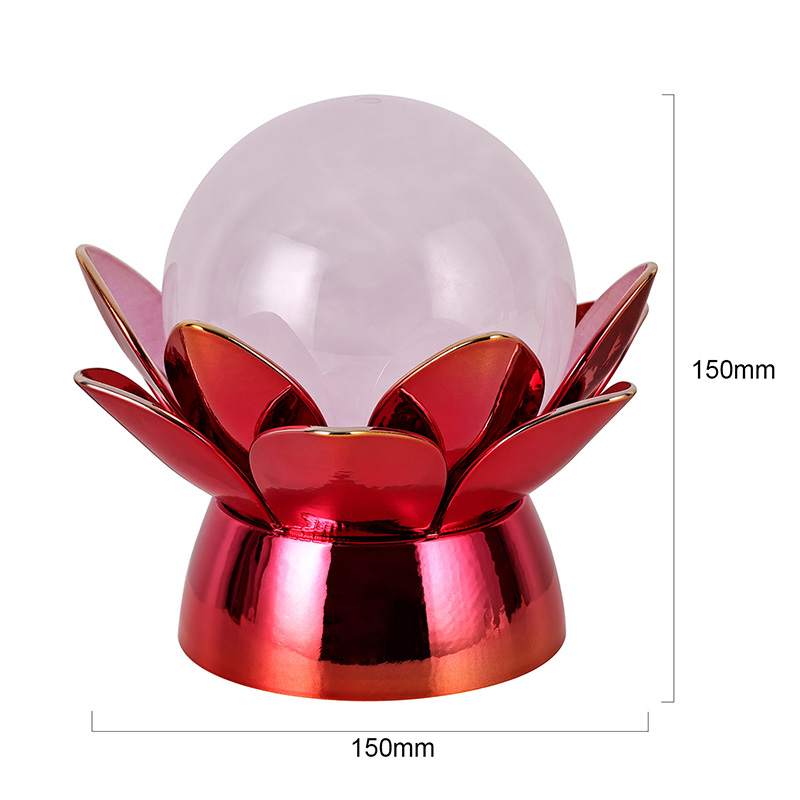 Kvaliteetsetest materjalidest valmistatud põhi on valmistatud poleeritud metallist, millel on silmatorkav punakaskuldne viimistlus, mis peegeldab kaunilt valgust, lisades välimusele sügavust ja rikkalikkust. Lootose disain ei toimi mitte ainult esteetilise fookuspunktina, vaid kannab ka sümboolset tähendust, mis on juurdunud ida traditsioonidest, esindades valgustatust, vastupidavust ja harmooniat. Peegeldav pind suurendab visuaalset mõju, pannes lambi särama ka vähese valgusega keskkondades.