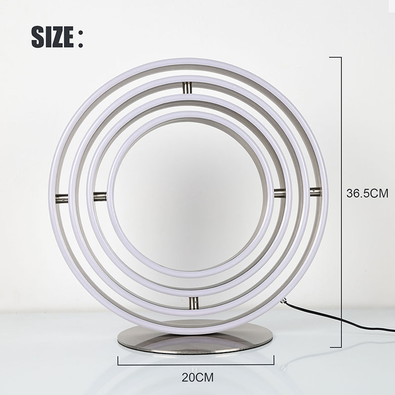 Mitme rõngaga LED-dekoratiivne laualamp on midagi enamat kui lihtsalt valgustusseade; see on kunstiteos, mis täiustab teie eluruumi õhkkonda. Selle elav, dünaamiline ekraan ja elegantne disain muudavad selle silmapaistvaks lisandiks igasse ruumi. Ükskõik, kas soovite luua hubase lugemisnurga või lisada oma elutoale moodsat elegantsi, on see lamp ideaalne valik.
