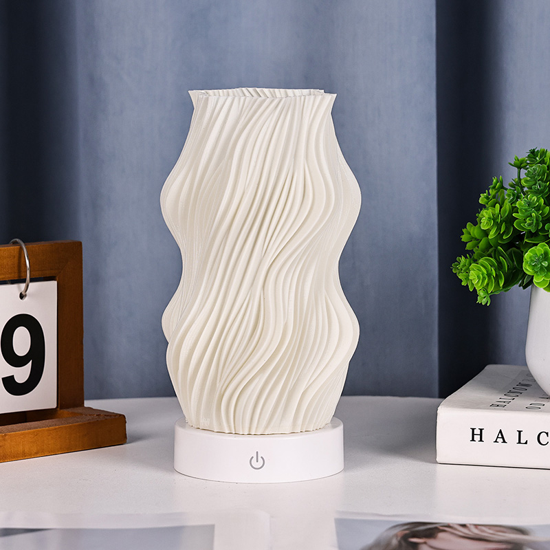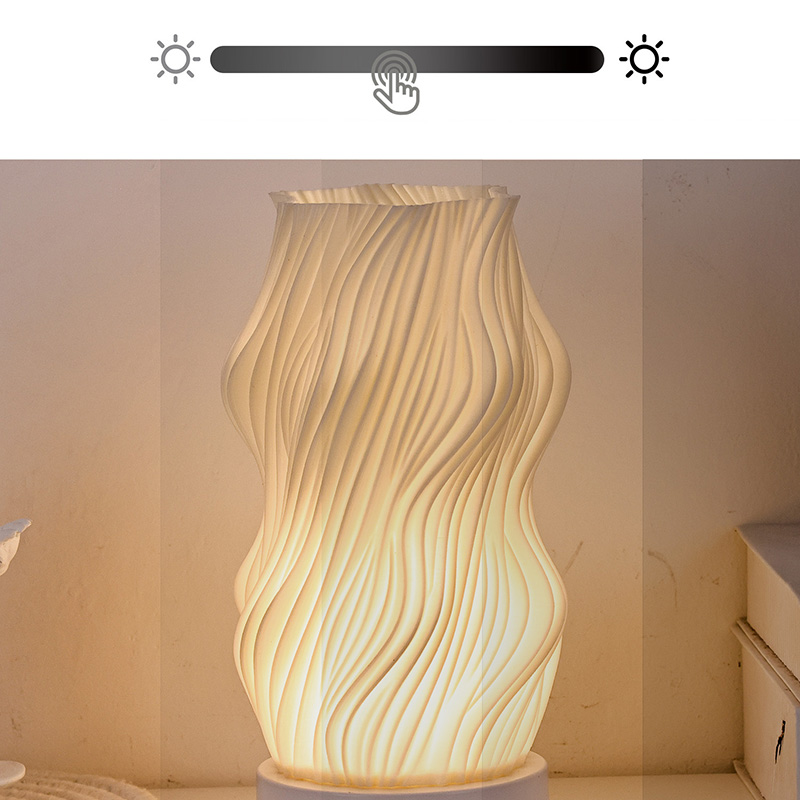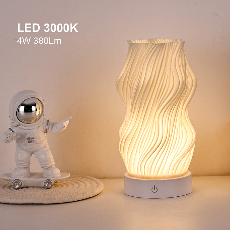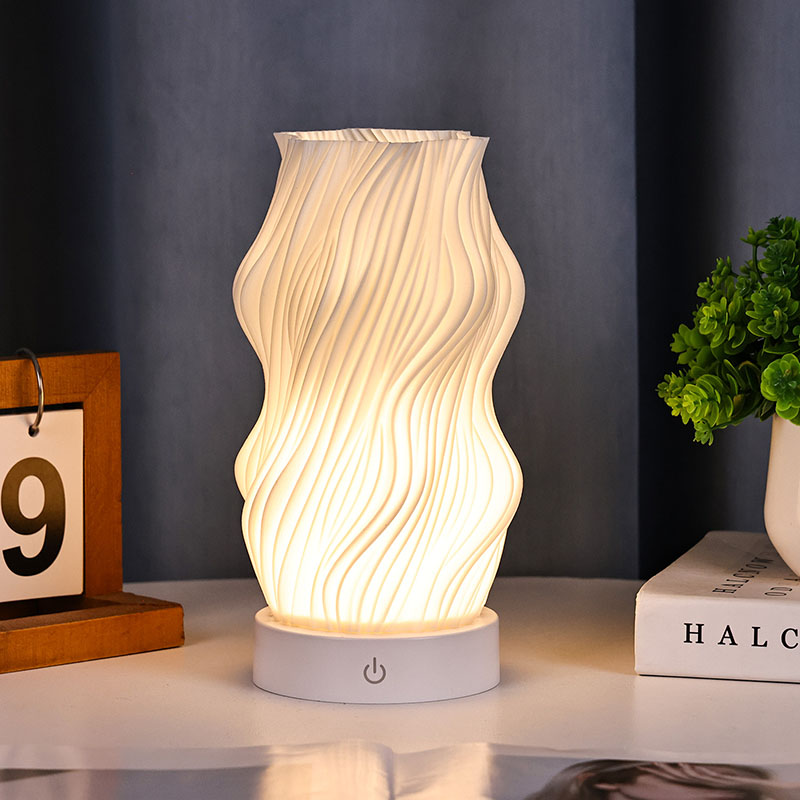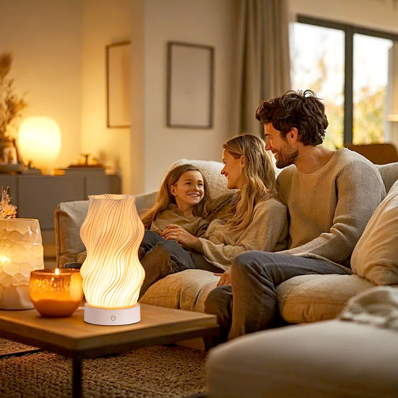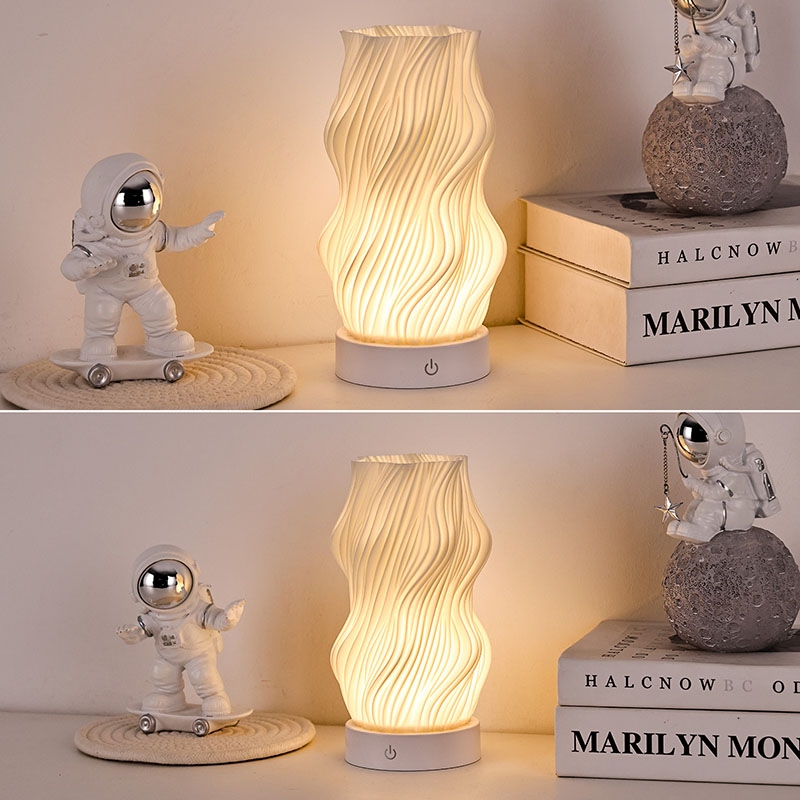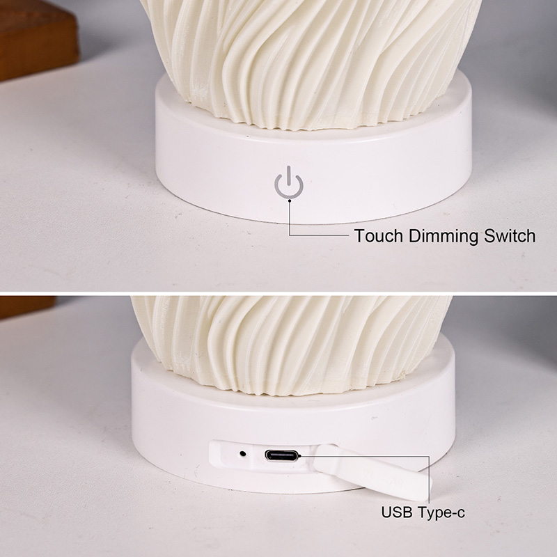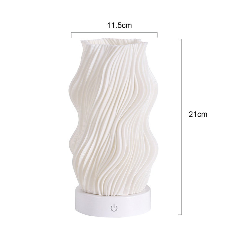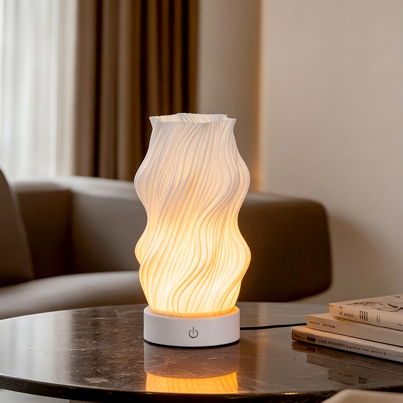 Esmaklassilisest plastist valmistatud Flame Night Light laualambi korpus on (kompaktne) ja kerge. See mitte ainult ei tundu puudutamisel soe, vaid seda on ka lihtne puhastada ja liigutada. Minimalistlik lainelise tekstuuriga disain ühendab kunstilise ilu praktilisusega, sulandudes pingutuseta igasse kodukaunistuse stiili. See on täiuslik ruumisäästlik aktsent, mis lisab teie ruumi elegantsi.