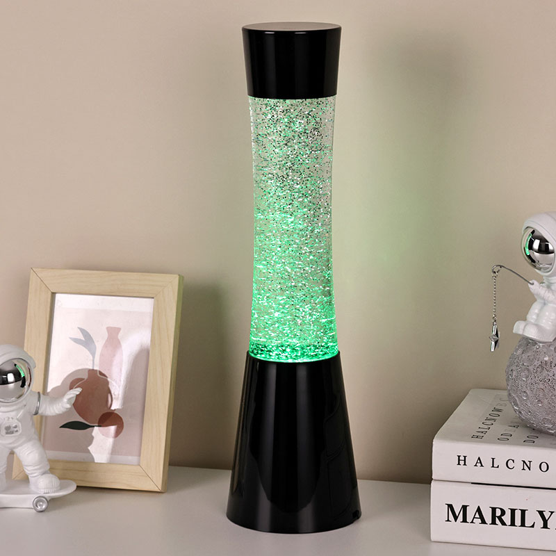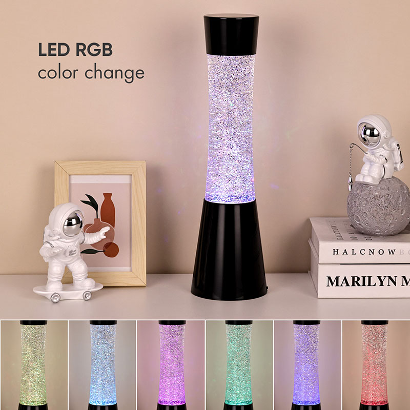 Veel üks selle väikese öölambi esiletõst on selle sees olev vedel ja sädelev disain. Vedelik sisaldab suures koguses sära, mis särab valguse valguses eredalt, justkui vilkuks öötaevas lugematu arv tähti. Kui vedelik voolab, hakkab sära ebaregulaarselt laiali, luues unenäolise visuaalse efekti. 3AAA patareiga LED-sädeldav laavalamp omab ka RGB värvivalgustuse funktsiooni. Täiustatud LED-tehnoloogia abil saavad valgustid eraldada pehmet ja ühtlast valgust ning reguleerida valguse värvi vabalt vastavalt erinevatele stseenidele ja vajadustele. Saate valida oma lemmikvärvi või lasta valgustitel värve automaatselt muuta, et luua värviline visuaalne pidu.