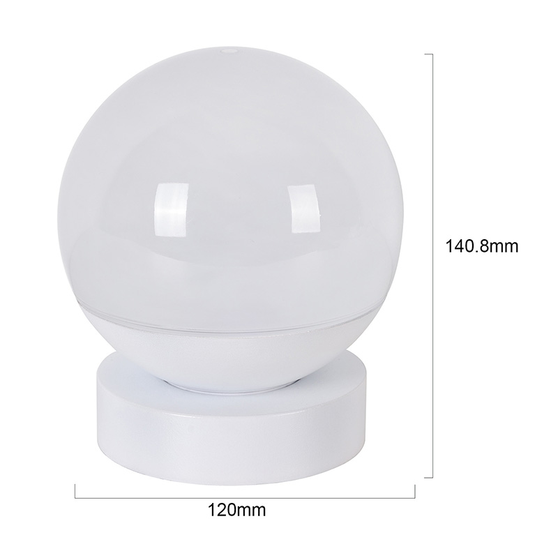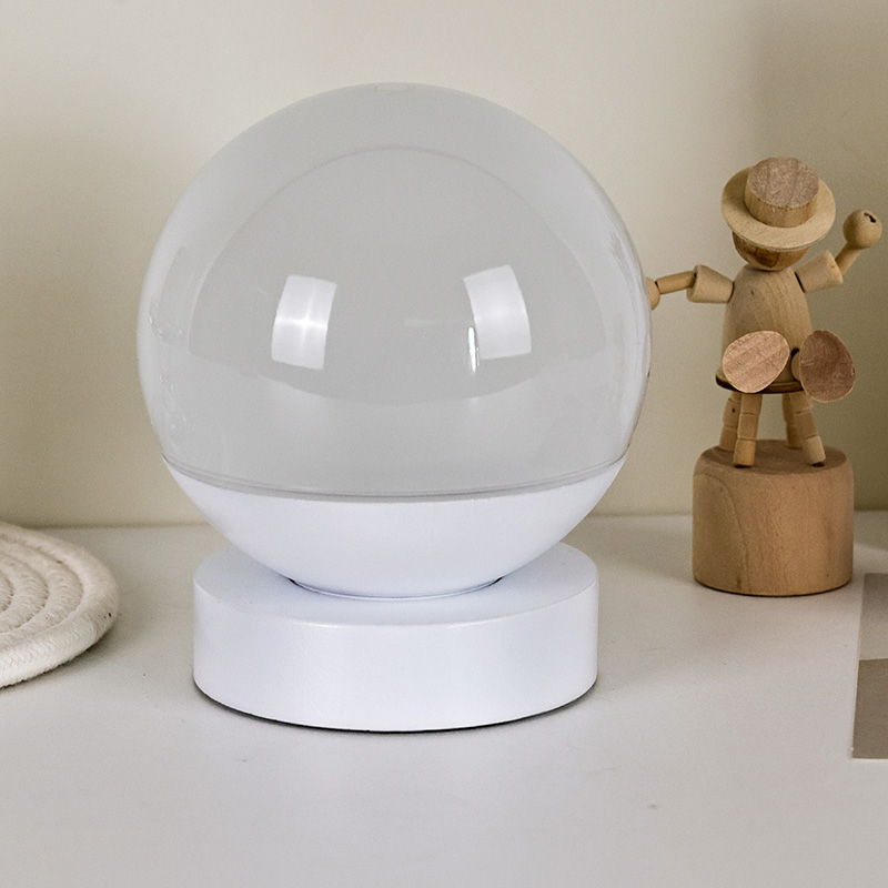 Ülddisainis on ümar kera, mille ülemine pool on valmistatud poolläbipaistvast mattmaterjalist, mis kiirgab pehmet ja õrna valgust. Alumine pool koosneb valgest alusest, mis tagab stabiilse toe ning millel on puhtad ja siledad jooned. Selle kompaktne suurus