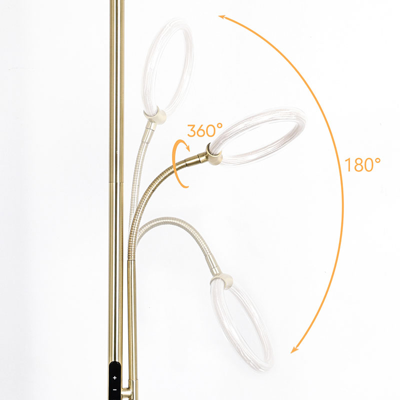 Luksuslik Gold led-põrandalamp elutuppa on varustatud täiustatud silikoontoru 360-kraadise valgustustehnoloogiaga, mis kiirgab pehmet ja ühtlast valgust, valgustades efektiivselt kogu ruumi. Silikoontorudel on hea paindlikkus ja vastupidavus ning need taluvad stabiilsuse ja ohutuse tagamiseks erinevaid keskkonnatingimusi