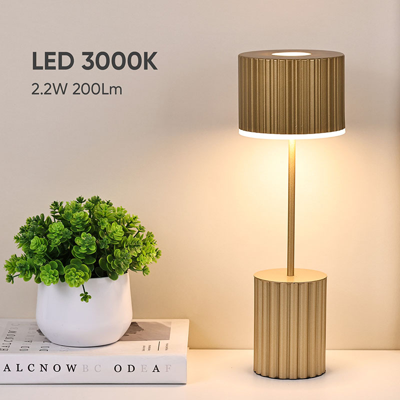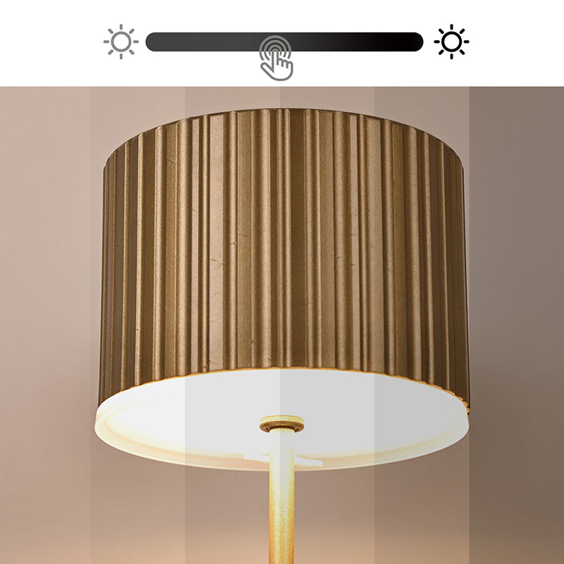 Puutelüliti (C-tüüpi laadimine)Erinevate stsenaariumide valgustusvajaduste rahuldamiseks on metallvarjuga väike akuga laualamp varustatud täiustatud 3-käigulise hämardusfunktsiooniga. Lihtsate toimingute abil saate valgustuse intensiivsust vabalt reguleerida.
