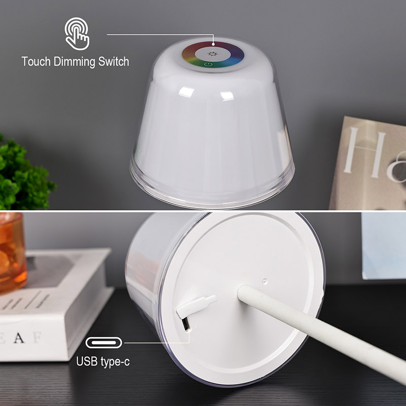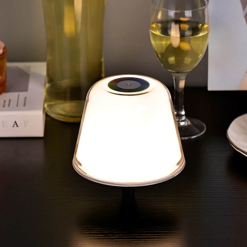Laualambi valgust saab automaatselt teisendada RGB-lt erinevatele värvidele või reguleerida käsitsi erinevatele värvidele. Muidugi, kui seda kasutatakse valgustusseadmena, on olemas ka soe valgus, millel on lõpmatu hämaruse reguleerimine, mida saab lugemiseks kasutada. Laualambil on laiem kasutuskeskkond, kuna see on varustatud akuga, nii et lambipea saab eemaldada ja kaasas kanda või sisestada kaunistamiseks veinipudelisse. Muidugi, kui laualamp on kokku pandud, saab seda kasutada lugemisvalgustina