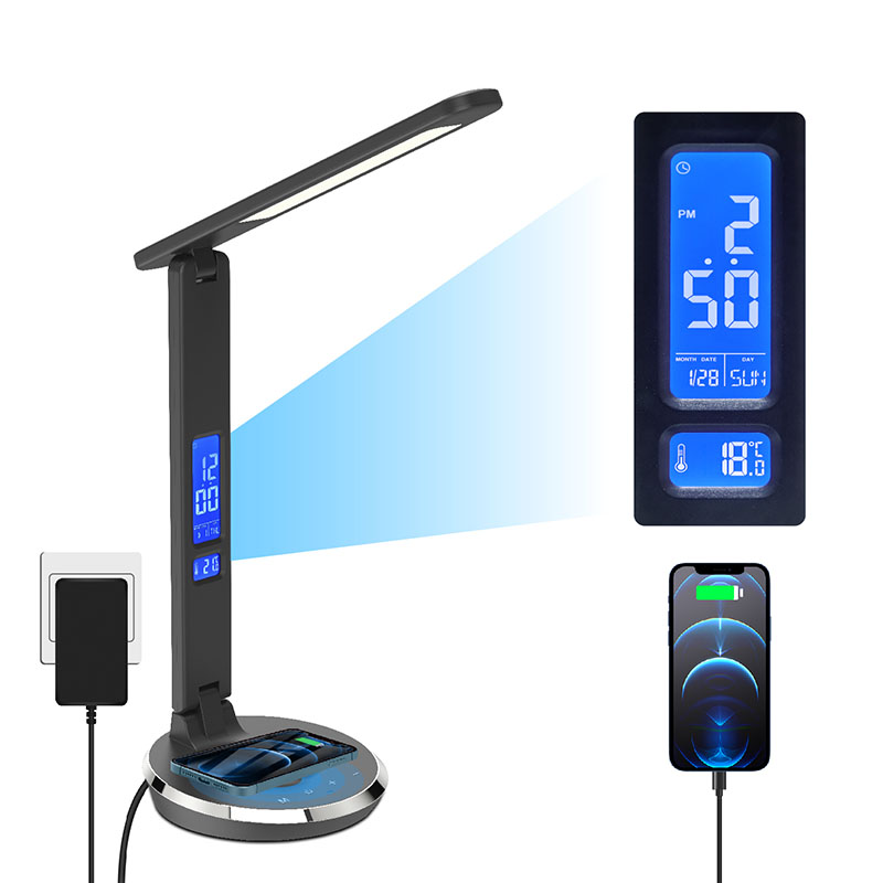 Seal on LCD-ekraan temperatuurinäidikuga, kellaaeg, äratuskell, püsikalender koos tagumise korpuse juhtnupuga. Ja laualambi varjul on usb laadimisport.