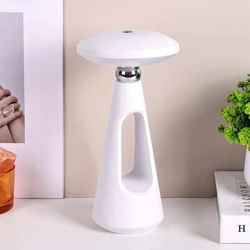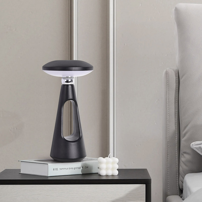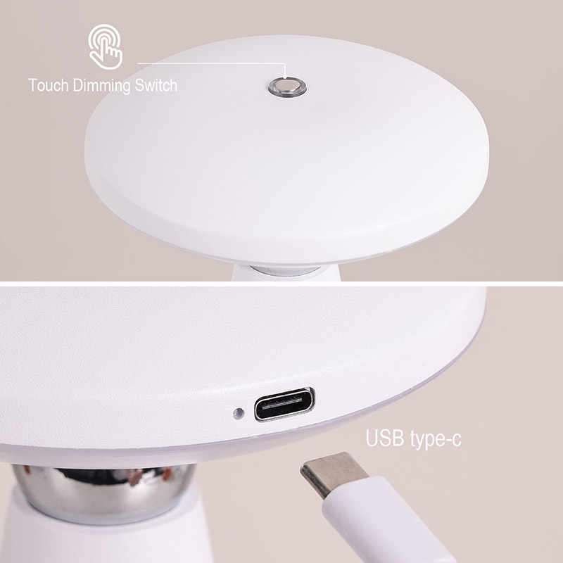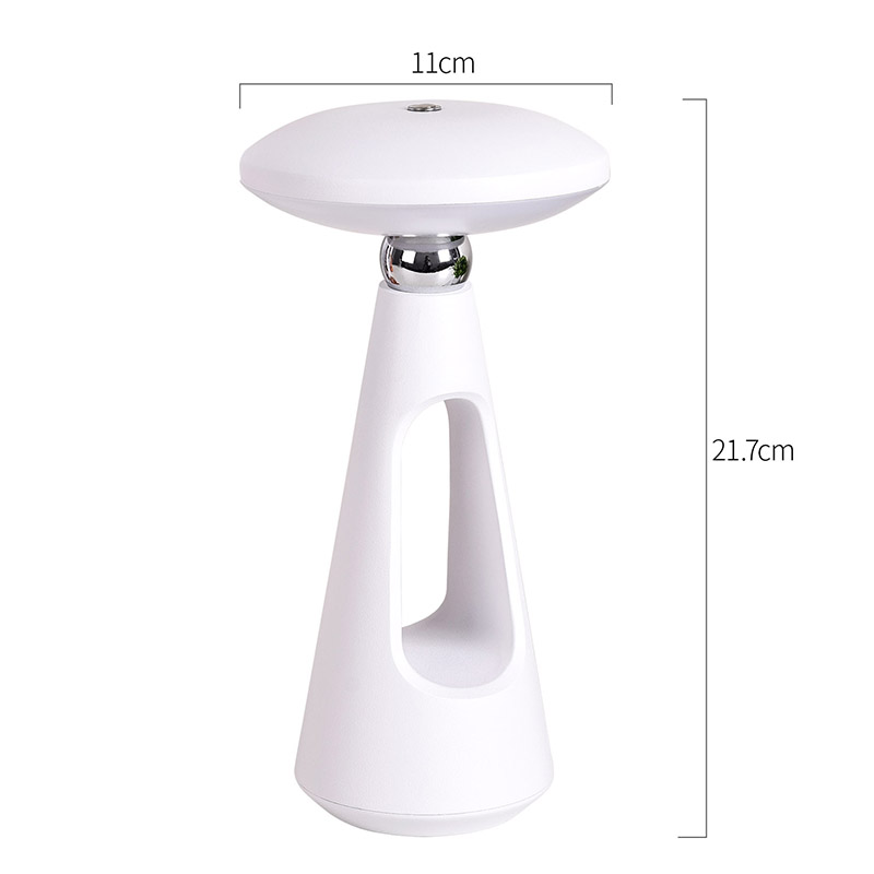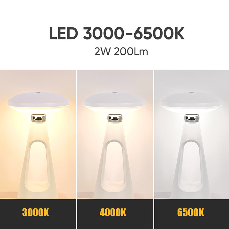 Laetava akuga Mushroom LED laualamp on varustatud täiustatud LED-valgusallikaga, mis kiirgab pehmet sooja valgust ja saab reguleerida valguse intensiivsust. Lõpmatu hämardamine võib teie silmi tõhusalt kaitsta. Lihtsate toimingute abil