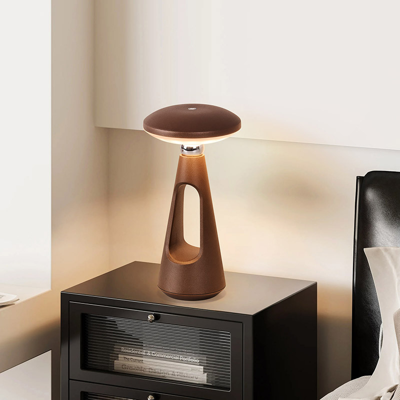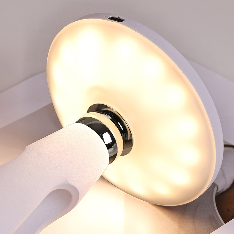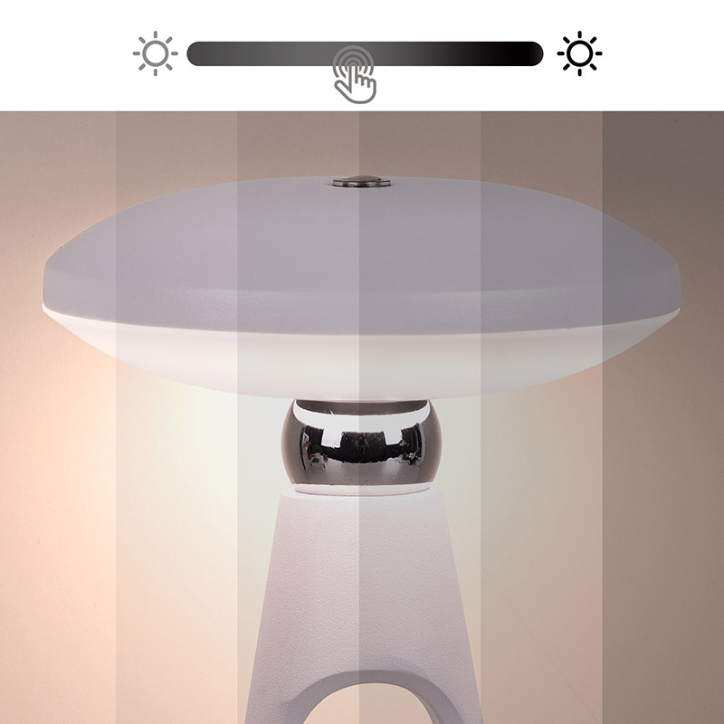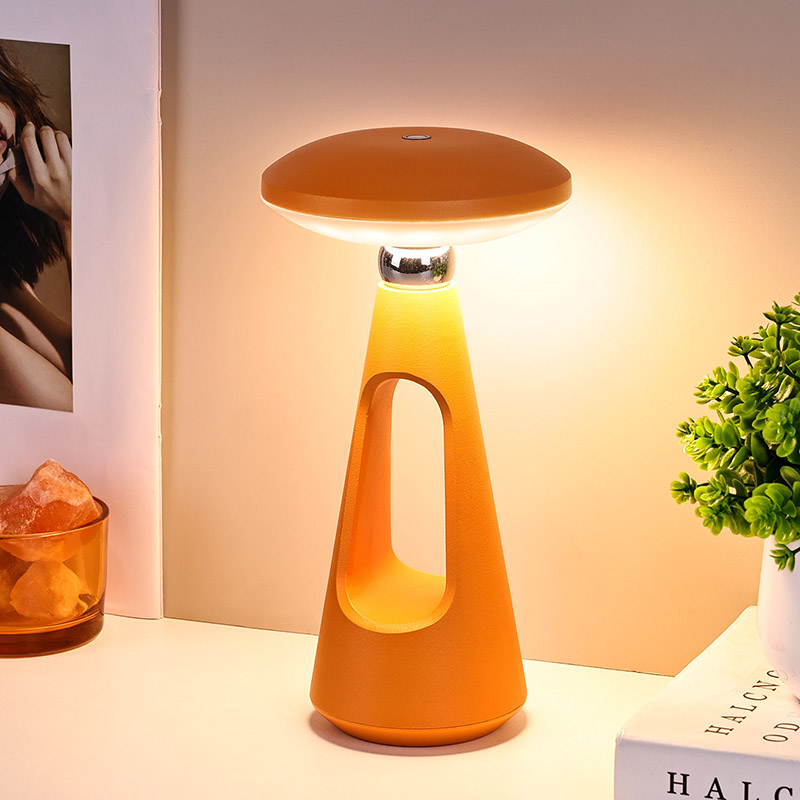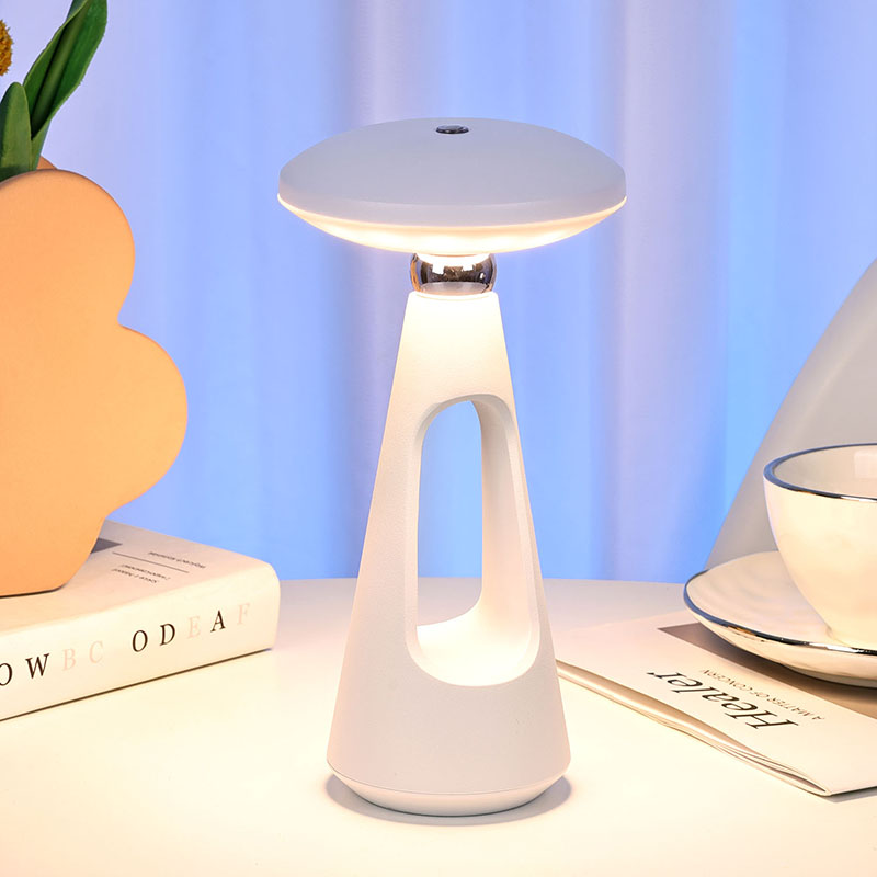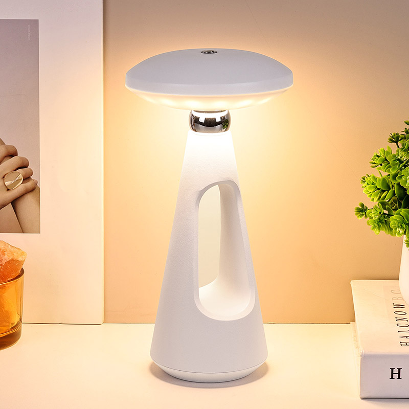 Laetava akuga Mushroom LED laualamp on varustatud täiustatud LED-valgusallikaga, mis kiirgab pehmet sooja valgust ja saab reguleerida valguse intensiivsust. Lõpmatu hämardamine võib teie silmi tõhusalt kaitsta. Lihtsate toimingute abil