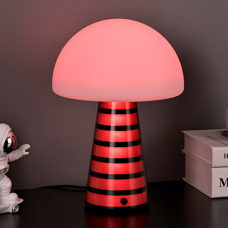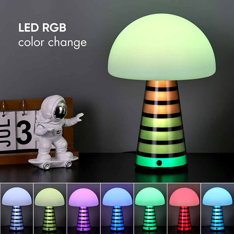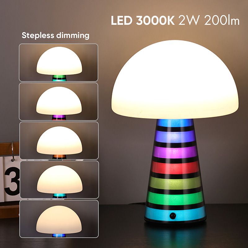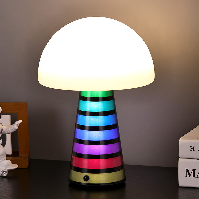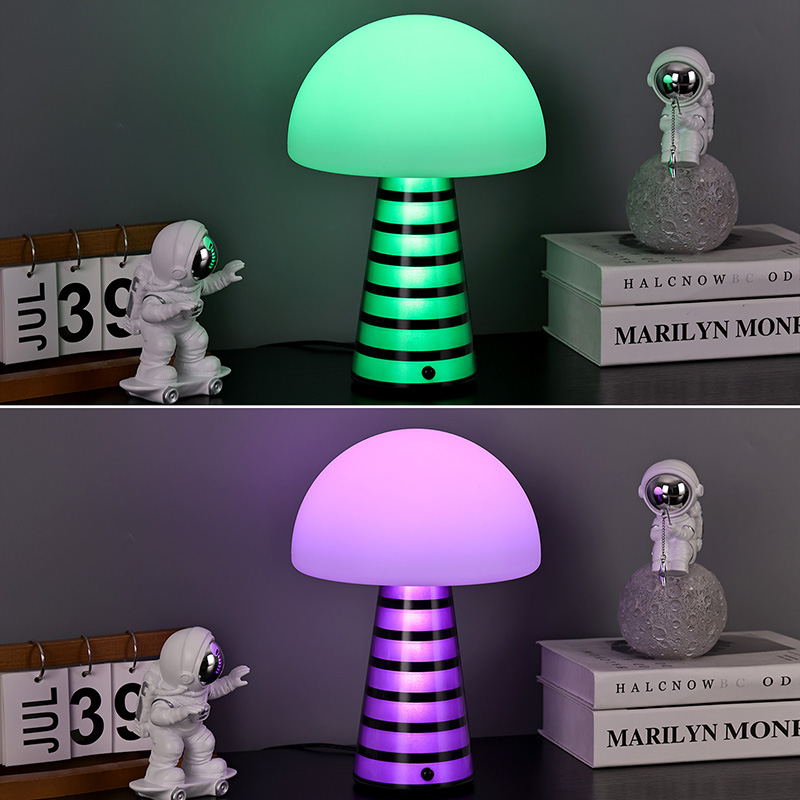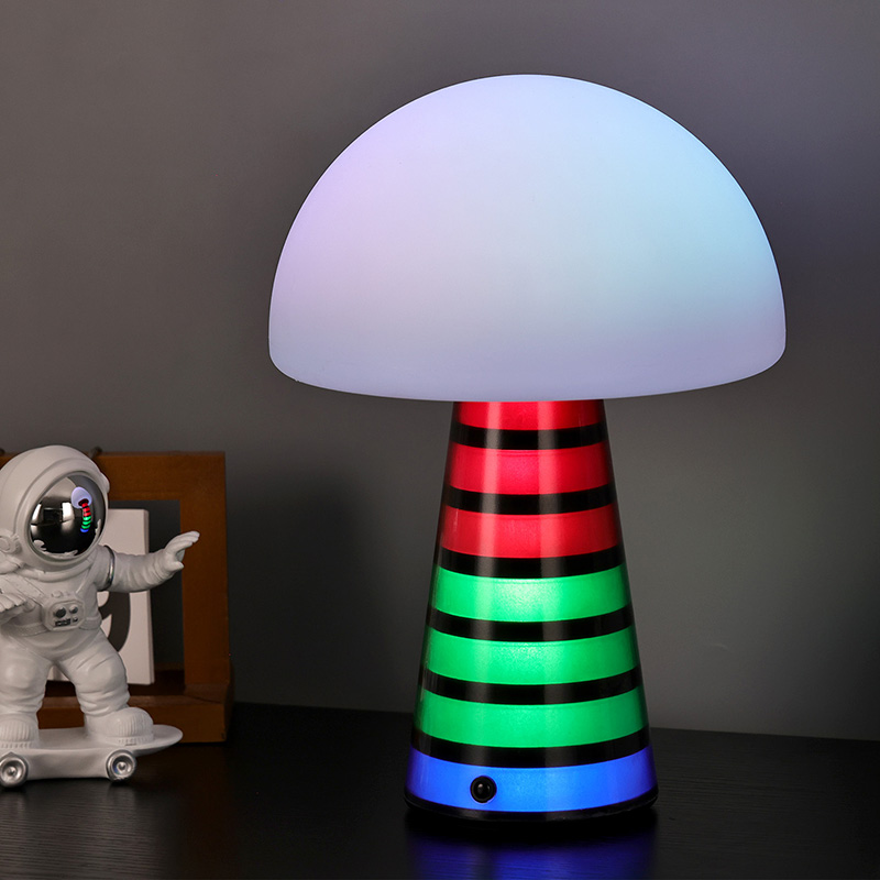Digi RGB öölampLaualambi üldine stiil on armas ning PVC materjal koos seenekujulise disainiga on laste seas väga populaarne. Lambipea ja lambipost võivad mõlemad värvi muuta ja värvid muutuvad vaheldumisi, muutes värvid väga ilusaks. Lisaks on laualambil sooja värvi reguleeritav valgustugevus, mida saab kasutada valgustuslambina. See on laste stiilis magamistoas väga harmooniline