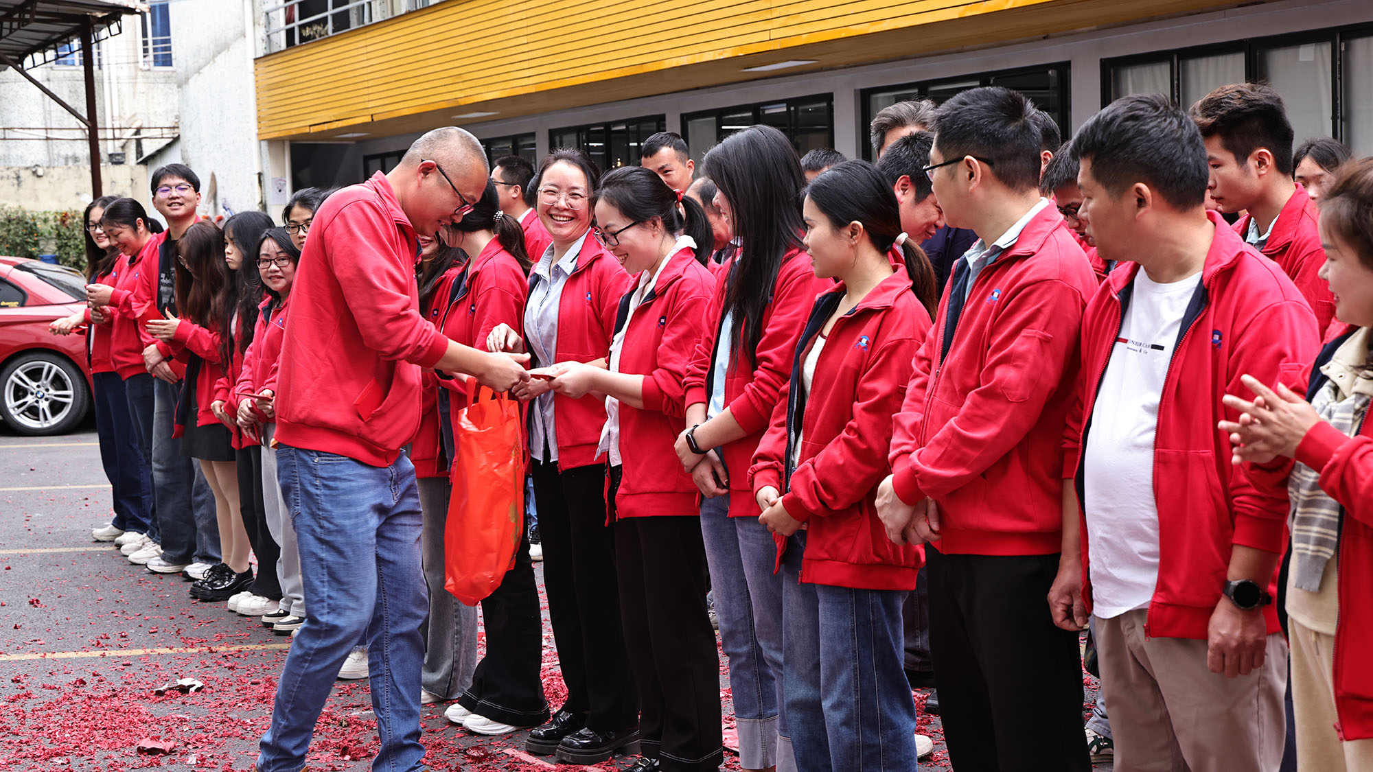 Seejärel viis "Kick-off Red Packets" levitamise põnev segment kohapealse atmosfääri haripunkti. Ettevõtte juhtkond jagas igale töötajale isiklikult soodsad punased ümbrikud (Li Shi). Need rasked punased pakikesed ei kandnud mitte ainult ettevõtte hoolt ja õnnistusi töötajatele, vaid ka kauneid lootusi kõigi sujuvaks tööks ja õnnelikuks eluks uuel aastal. Punaseid pakikesi vastu võtnud töötajad särasid rõõmsatest naeratustest, vahetades tervitusi "Õnnekas algus". Naer ja rõõm täitsid õhku, põimides uue aasta tugeva maitse inimliku soojusega, soojendades kõigi südant.