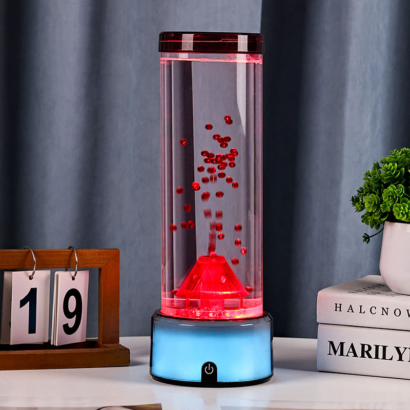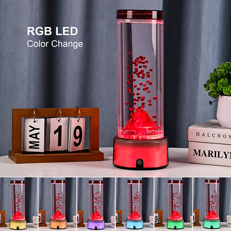 Sellel vulkaanikujulisel LED-lambil, mis on disainitud pöörates erilist tähelepanu detailidele, on silindriline vedelikukamber, mis on täidetud selge vedeliku ja hõljuvate punaste osakestega, mis simuleerivad aktiveerimisel vulkaanipurset. Lambi põhi helendab elavate, värvimuutvate RGB-tuledega, samas kui vulkaani keskstruktuur pulseerib tulise valgustusega, jäljendades tegelikku purset. Samal ajal hõljuvad vedelikusambas graatsiliselt õrnad meduusitaolised kaunistused, lisades sürrealistlikku veealust õhkkonda. Üheskoos loovad need elemendid lummava visuaalse vaatemängu, mis ühendab looduse jõu ja moodsa disaini elegantsi. Disain ja esteetiline välimus RGB värvimuutev vulkaanlamp on umbes 12 tolli kõrgune, mistõttu sobib see ideaalselt töölaudadele, öökappidele, riiulitele või silmapaistva dekoratiivesemena elutuppa või magamistubadesse. Selle elegantsel ja kaasaegsel siluetil on läbipaistev silindriline toru, mis on valmistatud kvaliteetsest purunemiskindlast plastikust, mis tagab vastupidavuse ja ohutuse. Ülemine kaas on kindlalt suletud, et vältida lekkeid, samas kui põhi on valmistatud siledast, mattviimistlusega plastikust koos sisseehitatud juhtpaneeliga.