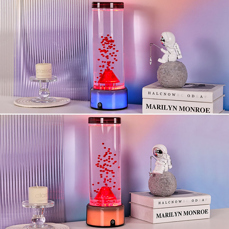 Unikaalse dekoratiivesemena lisab vulkaanilamp igasse ruumi isikupära ja võlu. Selle tule- ja veeteemade kombinatsioon muudab selle silmapaistvaks teoseks kaasaegses, minimalistlikus või eklektilises interjööris. Asetage see kõrvallauale raamaturiiuli kõrvale või ühendage see taimede ja raamatutega, et luua hubane lugemisnurk.