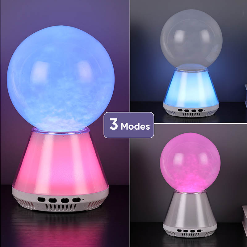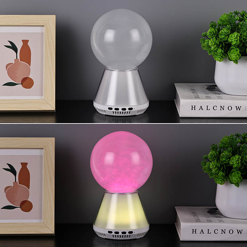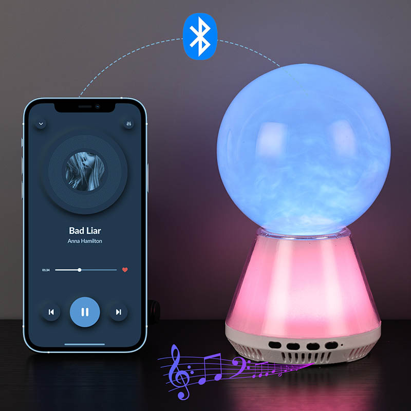 Bluetoothi juhtimisega RGB LED-sädeleva lambi põhitõeks on selle ainulaadne klaaskuuli disain. Klaassfääri sisemus on täidetud salapärase vedelikuga. Kui lamp on sisse lülitatud, hakkab vedelik aeglaselt kera sees voolama, moodustades unenäolise pilveefekti. Need pilved ja udu näivad langevat taevast,