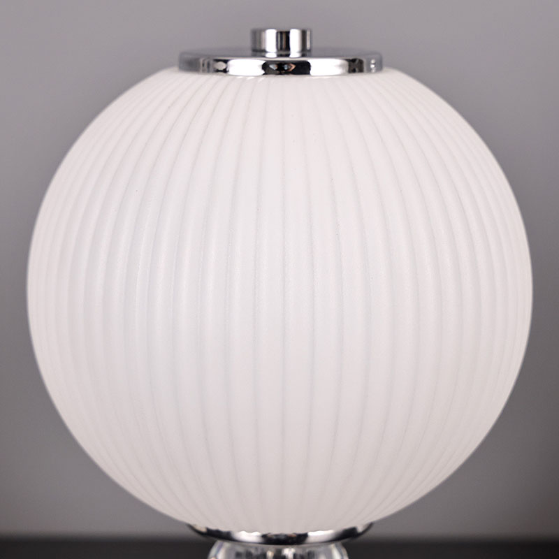 Selle minilaualambi suurim esiletõst on selle ainulaadne sfääriline lambivarju disain. Lambivari on valmistatud kvaliteetsest klaasmaterjalist, sileda ja õrna pinnaga ning pehme läikega. Sfäärilise lambivarju disain ei anna lambile mitte ainult puhta ja õilsa tekstuuri, vaid võimaldab ka valgust ühtlasemalt kiirata, luues pehme ja sooja atmosfääri.