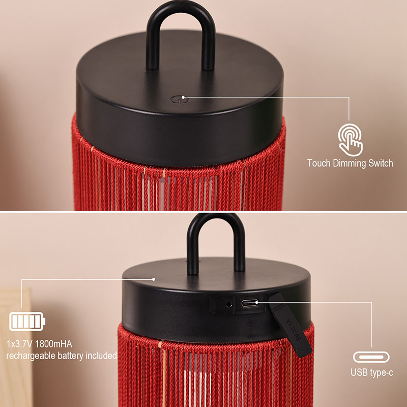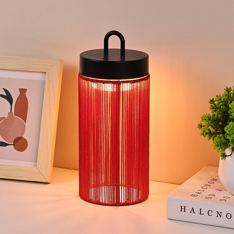 Ülddisain: silindrikujuline, lihtsate ja siledate joontega spetsiaalsel nailoniga LED-lauavalgustil on modernne minimalistlik stiil. Spetsiaalne nailonist kujuga LED-laualamp muudab selle paigutamisel stabiilsemaks ja mugavaks ka käeshoitavaks liikumiseks. Värvide sobitamine: põhiosa on helepunane, pakkudes inimestele sooja ja elavat visuaalset kogemust, mis on lihtne
