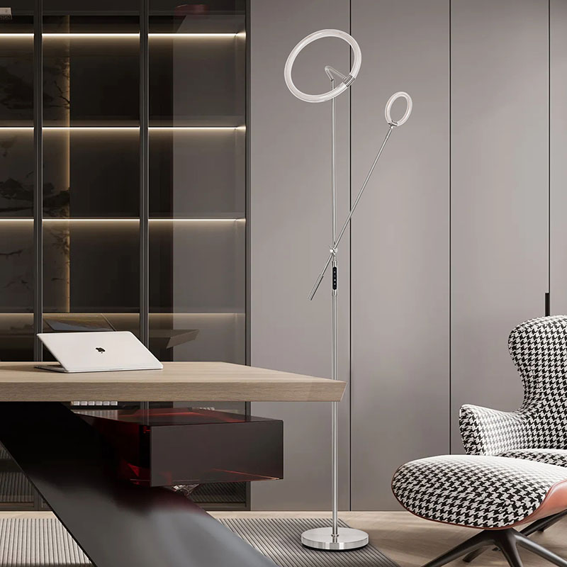 Keskkonnavalgustuse disain mitte ainult ei anna lampidele ainulaadset visuaalset efekti, vaid hajutab ka tõhusalt valgust, muutes valguse pehmemaks ja ühtlasemaks. Selle põrandalambi lambipost ja põhi on peenelt poleeritud ja töödeldud, sileda ja õrna pinnaga ning mugava käetundega,
