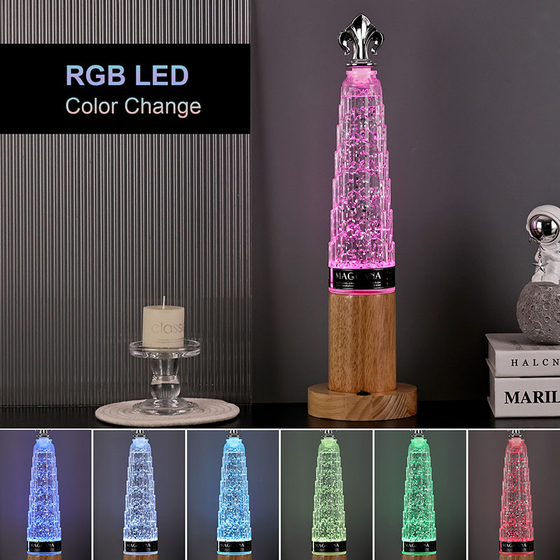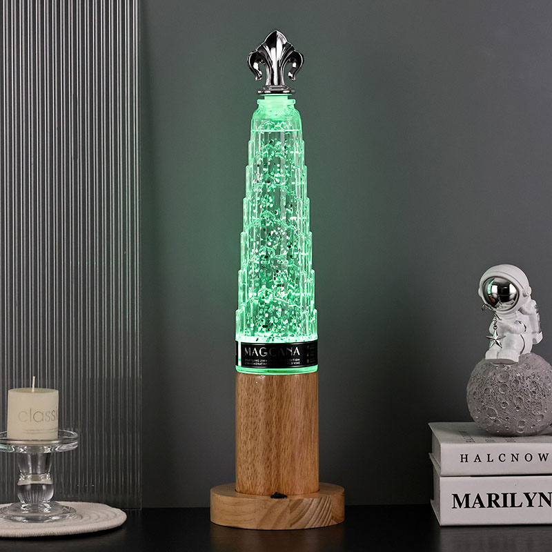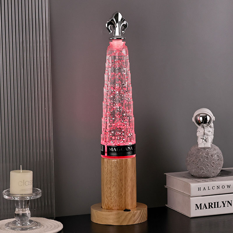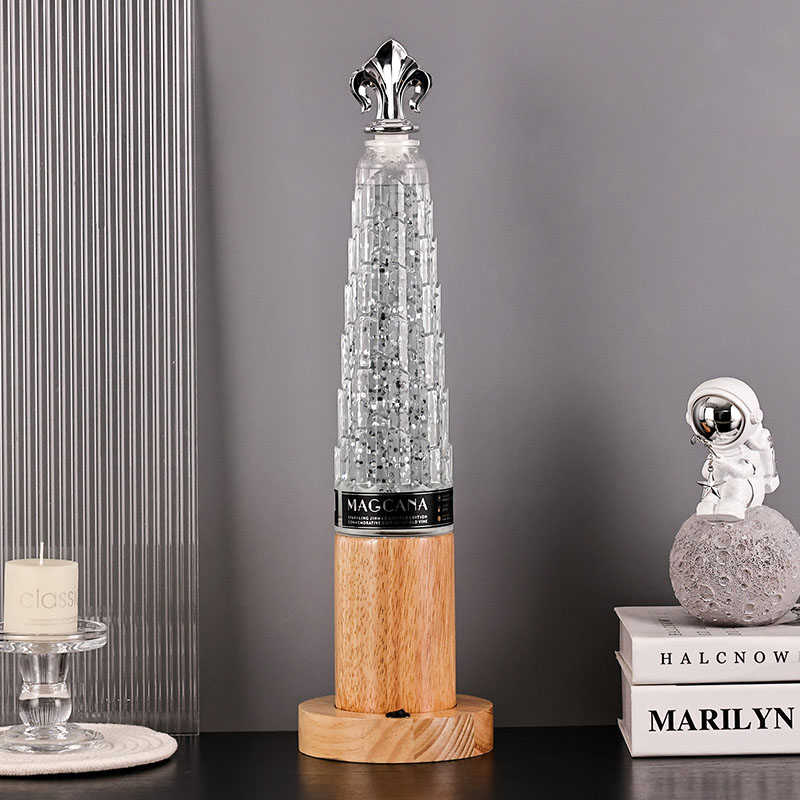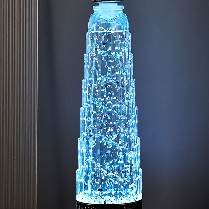 Tornivarjuga sädelev laualamp on klassikalise tornikujulise disainiga, mille ülaosas on peened metallist kaunistused, lihtne, kuid üllas. Läbipaistev klaaspudel sisaldab vedelikku ja